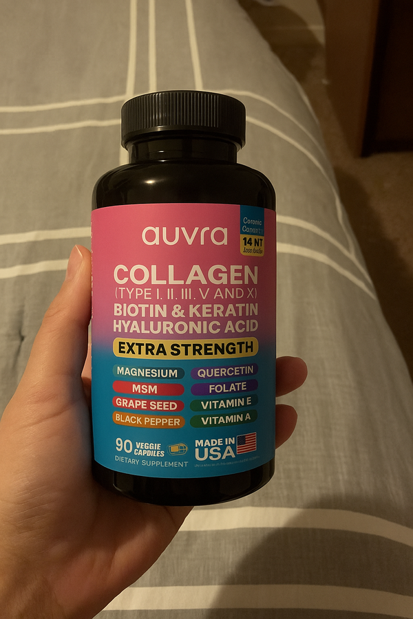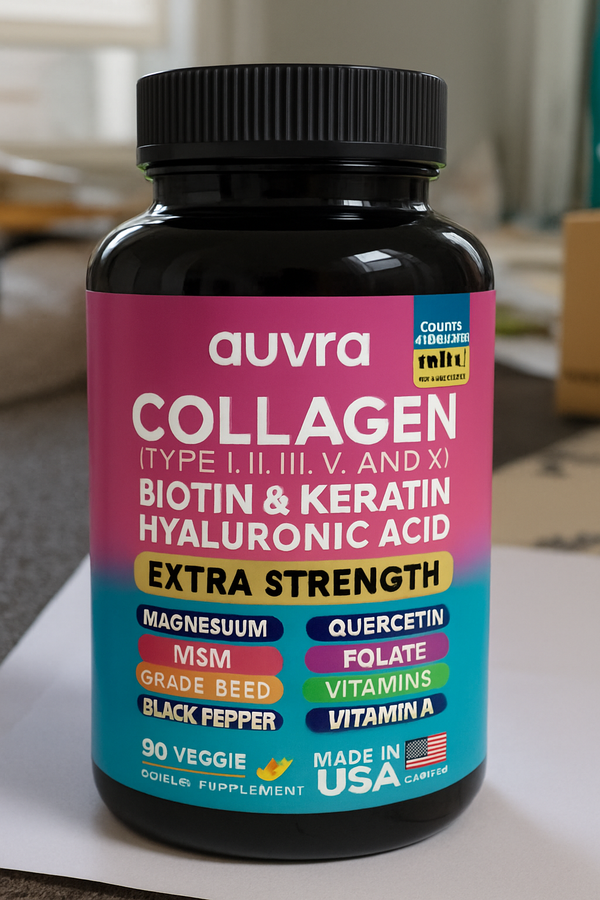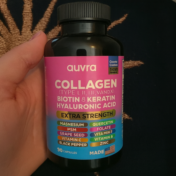 "I’ve been using Auvra Advanced Collagen Blend for 8 weeks and I’m genuinely impressed — my skin feels smoother, my fine lines around my eyes are visibly softer, and my nails are stronger. I’ll definitely keep using it"